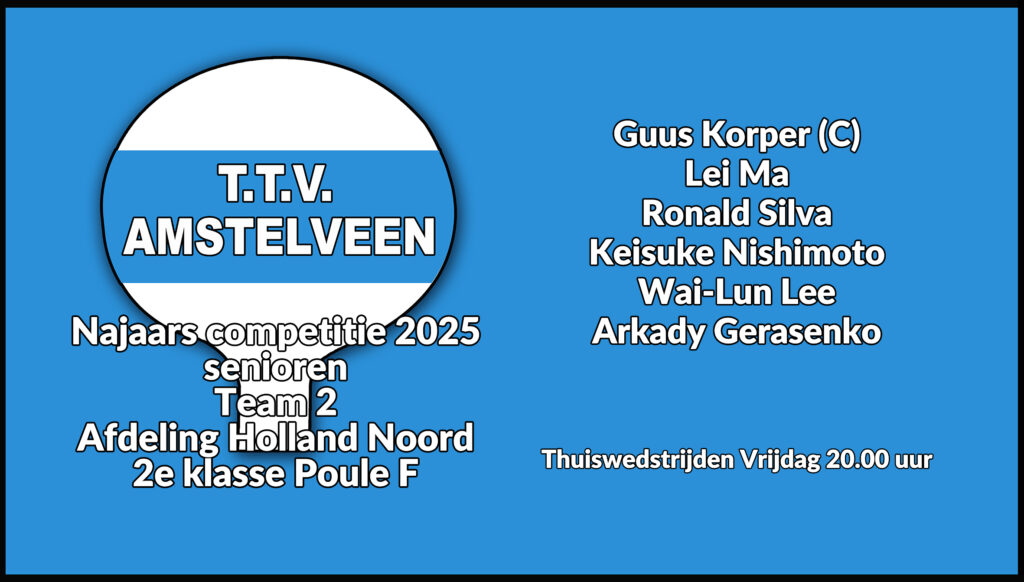 Wil je competitie spelen bij TTV Amstelveen of wil je meer informatie over de voorjaars of najaarscompetities laat het ons dan weten via het CONTACTFORMULIER.